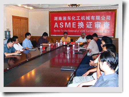 7月10日,美國機械工程師協(xié)會(ASME)派出聯(lián)檢組,對我公司進(jìn)行了ASME U、U2和NBBI(美國鍋爐及壓力容器檢驗師總部)R證書換證審查,同意向ASME及NBBI推薦更新我公司U、U2及R授權(quán)證書。 我公司以往取證、換證均采用ASME規(guī)范材料,材料采購周期長、成本高。而此次換證我公司采用ASME 2506號規(guī)范案例,成功應(yīng)用GB 6654 16MnR材料制作演示產(chǎn)品,為今后鋼印產(chǎn)品采用國產(chǎn)16MnR材料積累了成熟的經(jīng)驗。我公司早在1992年就取得了ASME U、U2及NBBI R授權(quán)證書及鋼印,本次是第五次通過換證審查。
