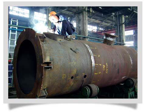 勞動(dòng)競賽現(xiàn)場  員工在專心施焊中
